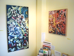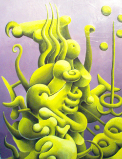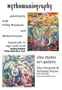 Neill Ewing-Wegmann was born in 1979 in Belfast, Maine. At age 2 his family moved to Los Angles, California. He lived there until the age of 12 when he moved to Bath, Maine. In 1998 Neill graduated from Morse High School in Bath. He attended Colby-Sawyer College, majoring in Graphic Design and Painting studying under Professor John Botte. After graduating with a BFA in 2002, he moved to Portland, Maine. All through his life he has made frequent visits to his parents' home state of Louisiana. Currently he works as a graphic designer at a print shop in downtown Portland. Neill's goal is to always have his work on public display.Ewing-Wegmann on his work...