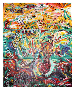 Every painting is a step in the evolution of my work. When I put brush to canvas I enjoy the anticipation of what the end result will be. The overall intent of my paintings is to expand the existing perception on the given subject whether that subject be human form, nature, mythology or an abstract thought from my own mind. This plays to the symbiotic relationship shared between the artist and his viewer. My personal goal as an artist is to push myself to create work that is unique while avoiding pretentious pitfalls. In this series I chose to interrupt a long time passion of mine, Norse Mythology, also known as Viking Mythology. Like all mythology this one, (written by warrior people), is about how mankind came to be and how it will end. The stories follow the adventures of a pantheon of gods: Odin, "King of the Gods," Loki "the Trickster," Thor "the Thunder God," Heimdall, "Centennial of the Rainbow Bridge," and many others. Their lives are chronicled until the end of their legacy when Ragnorok comes and the gods band together in one last battle against the forces of evil led by Odin's blood brother Loki. With such a rich source of material it was hard to narrow down what I wanted represented, but I tried to put a little of everything from Asgard, home of the gods, Thor's battle with giants, the apples the gods eat to stay young, to the evil ship, Naglfar, made of dead men's fingernails. I hope this work will inspire the viewer to learn more about this amazing mythology, the rich culture that spawned it, and that it evokes a sense of wonderment in a world gone by.
